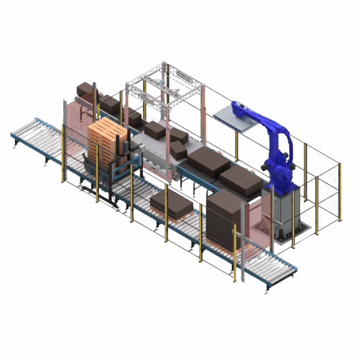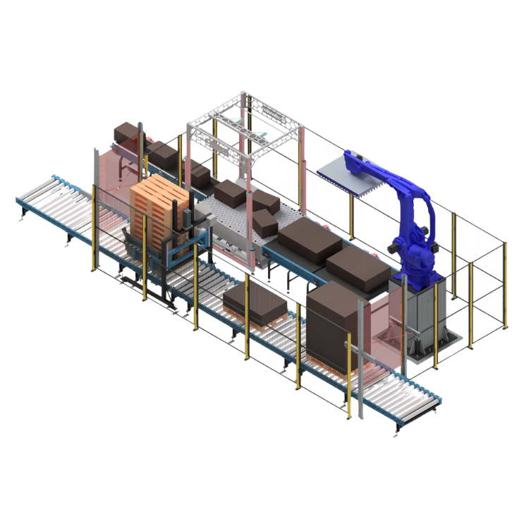Su estructura reducida y modular permite una integración sencilla en espacios reducidos, mientras que su control inteligente basado en cámaras adapta el proceso automáticamente al tipo y tamaño de las cajas, sin necesidad de reprogramación manual. Uno de los equipos de despaletizado de alta velocidad más compacto del mercado.