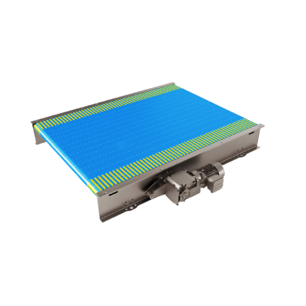 La superficie continua conformada por la banda modular ofrece la versatilidad de poder transportar todos los formatos de pallets sea cual sea su