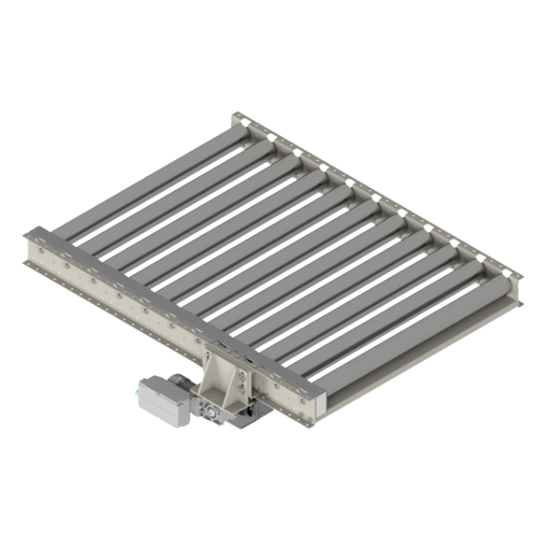 Sistema de transporte motorizado de rodillos diseñado para el manejo continuo y automatizado de pallets en instalaciones industriales y logísticas. Equipado con accionamiento por motorreductor y transmisión por cadenas a bucles, garantiza un desplazamiento fluido y fiable de cargas pesadas.