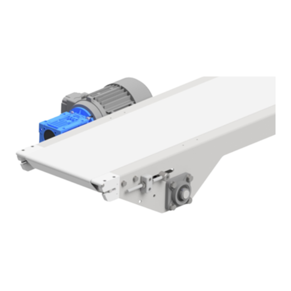 Sistema de transporte lineal de perfil ultra reducido con banda sintética motorizada y bastidor en acero inoxidable, diseñado para aplicaciones que demandan el mínimo espacio vertical posible. Equipado con rodillos de microdiámetro de Ø12 mm, este transportador representa la solución más compacta disponible, ideal para integraciones donde las restricciones de altura son críticas.