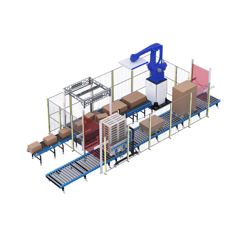 Sistema de paletización automática por capas diseñado para operaciones de alta eficiencia en la formación de pallets. El paletizador VL-3002 trabaja apilando capas completas de producto, optimizando el tiempo de ciclo y aumentando significativamente la productividad en comparación con sistemas de paletización unitaria.